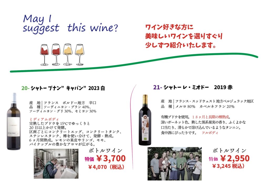 21-Suggerst のワインに赤ワインを新しくしました。 2026 1/29 お知らせ&ニュース 2026年1月29日 ベルジュラックですが 造りはボルドーと同じ 有機で長期樽熟成のワインです。 べScreenshot お知らせ&ニュース この記事が気に入ったら いいねしてね! 良ければシェアしてください! URLをコピーしました! 新しいsuggestionの白ワイン登場 この記事を書いた人 アペロ食堂 大阪・北新地のワイン&洋風お好み焼。 【洋風お好み焼】にワインを合わせる新感覚のお店。 大阪駅前第2ビル内、地下2階で交通のアクセス抜群。仕事帰りに気軽にぷらっとお立ち寄りください。 関連記事 21-Suggerst のワインに赤ワインを新しくしました。 2026年1月29日 新しいsuggestionの白ワイン登場 2026年1月25日 お薦めワイン 2026年1月7日 新年もどうぞよろしくお願いいたします。 2025年12月29日 年末営業は12月30日まで 予約結構入っております。 2025年12月27日 12月11日〜25日まで2周年感謝 グラスシャンパーニュ特価します。プティ贅沢をどうぞ。 2025年12月8日 ボジョレー・ヴィラージュヌーヴォ2025お祭り価格で販売 グラス500円/税抜 11月20日から 2025年11月15日 アマローネ生産者来日 メーカーズディナー開催します。 2025年10月12日